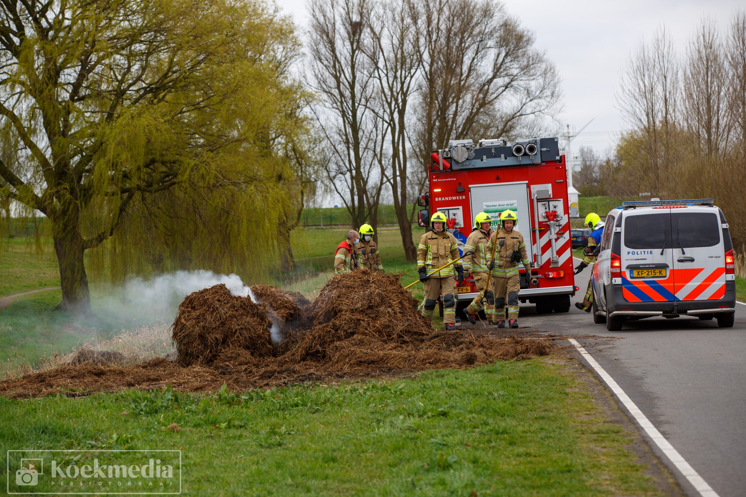 Op de Schenkeldijk was een berg met rietafval gaan broeien,smeulen en gaan roken. De brandweer moest het rietafval uit elkaar trekken om de brand goed te kunnen blussen. Vereende krachten van de brandweerlieden lieten dit eenvoudig slagen. Na ongeveer 15 minuten was de brand meester. De gemeente is ingelicht om het rietafval te komen verwijderen.