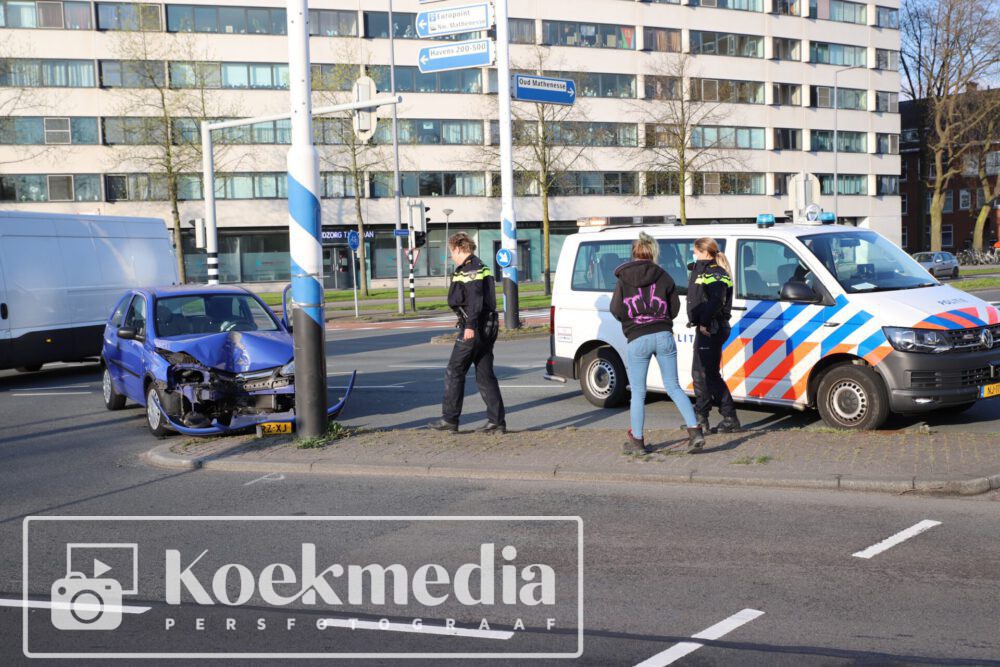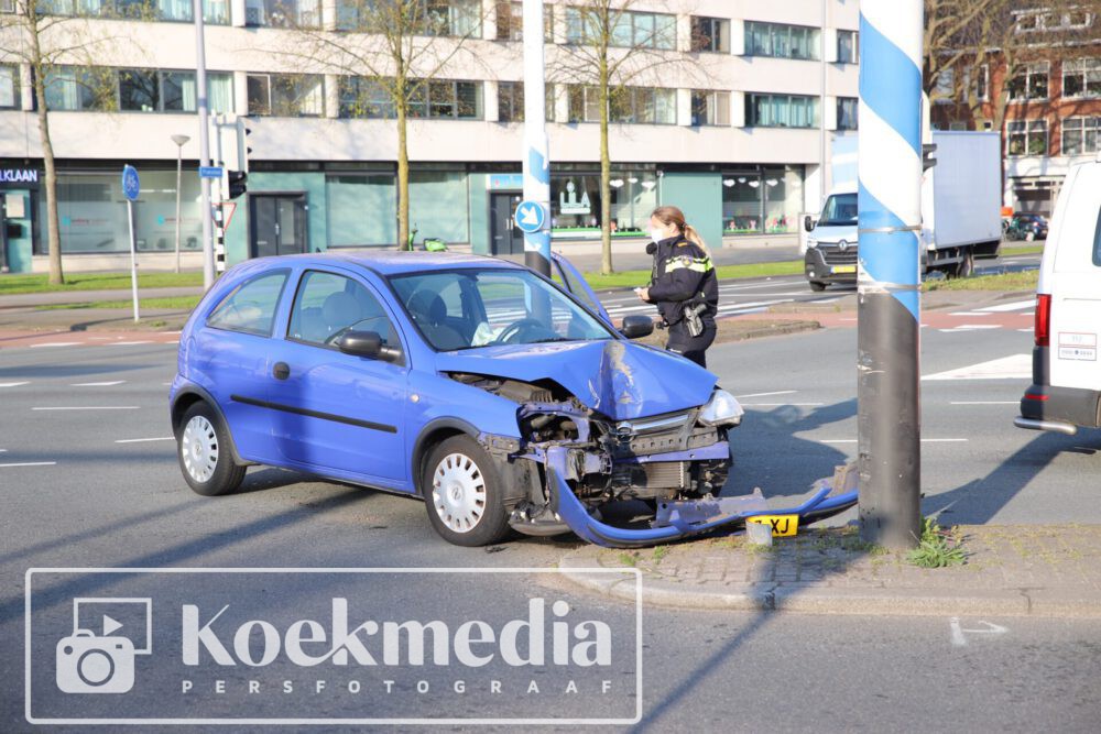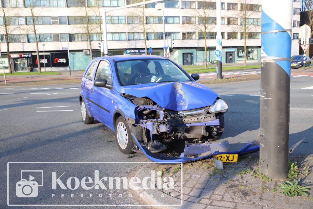 Rotterdam – Op de Tjalklaan in Rotterdam is zaterdagmorgen even voor 8:00 een auto tegen een verkeerspaal gebotst. De bestuurster van de auto had de bocht te kort genomen en moest uitwijken voor een andere auto