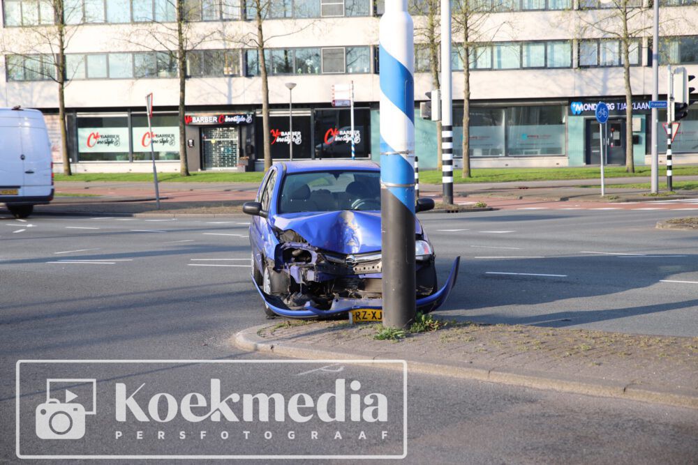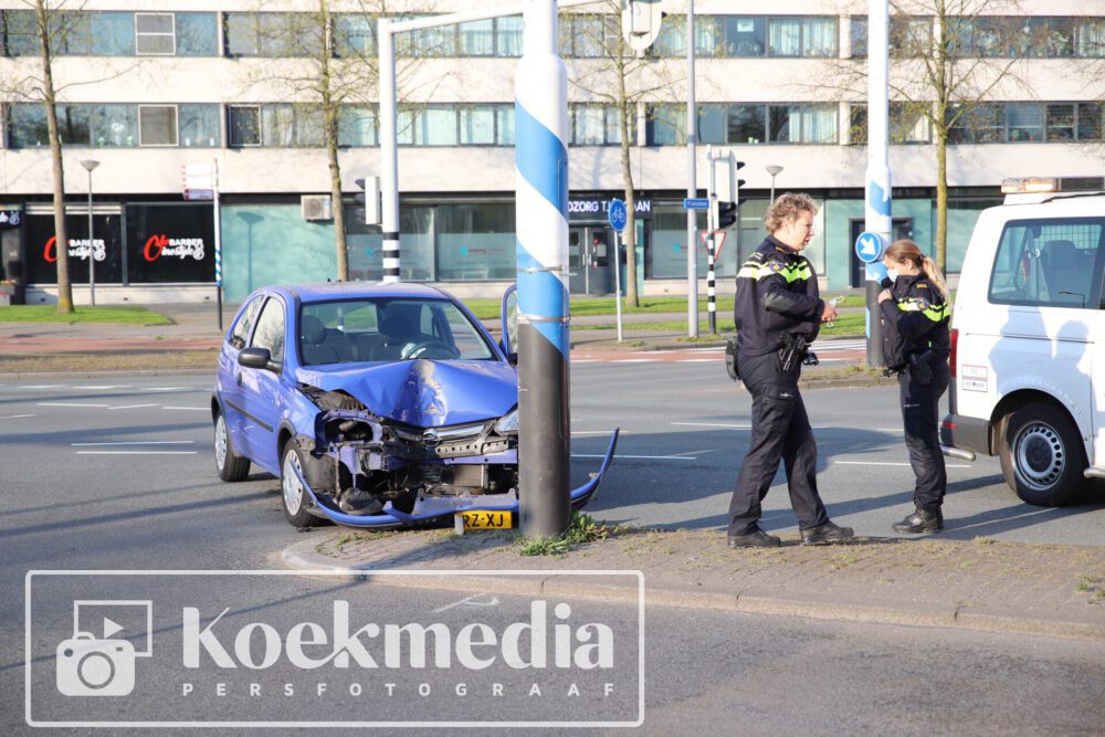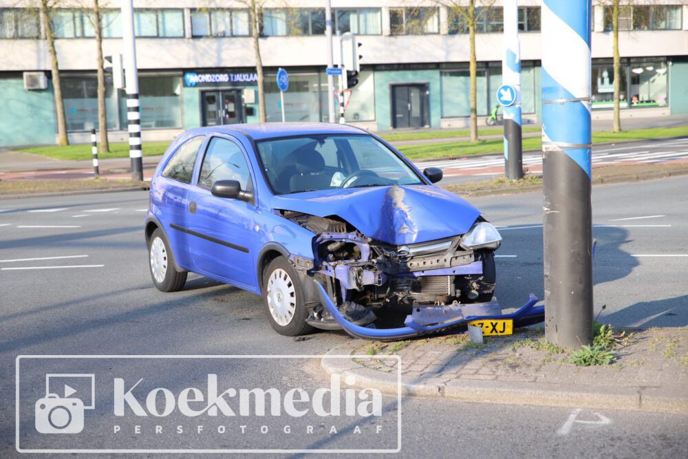 De auto raakte hierbij de verkeerspaal en raakte zwaar beschadigd. De bestuurster raakte niet gewond na het ongeval. De politie heeft geassisteerd met de hulpverlening. Een bergingsbedrijf zal de auto ophalen.