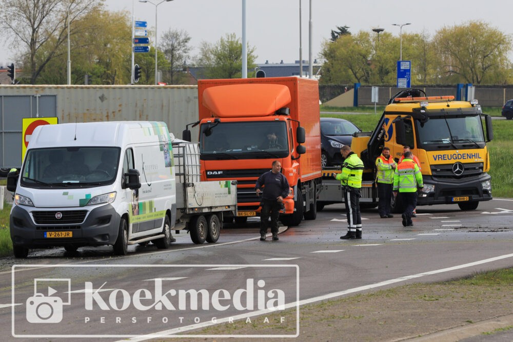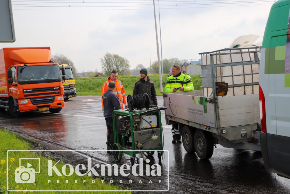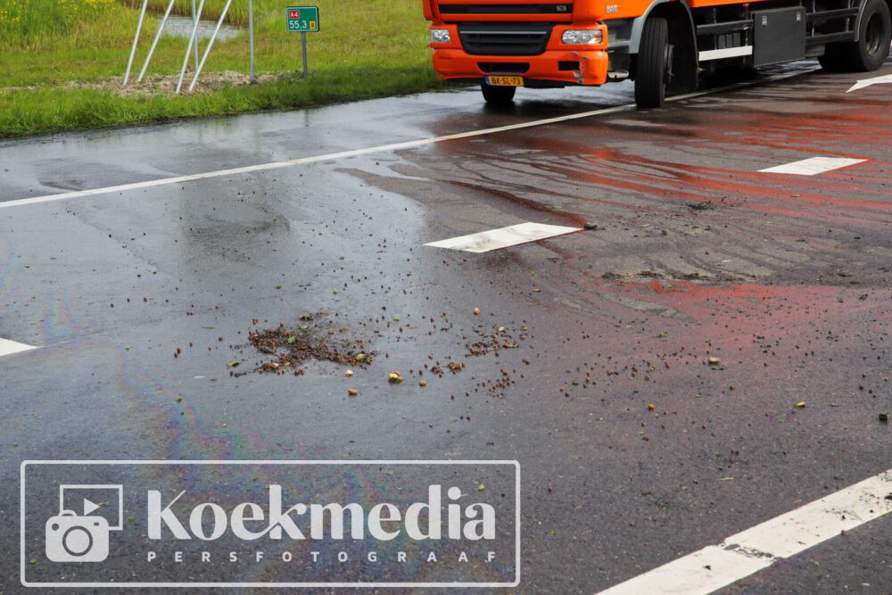 Den Hoorn – Maandagmorgen is een aanhangwagen met daarop een container gevuld met diesel gekanteld op de afrit A4 Den Hoorn/Schipluiden/ De Lier.